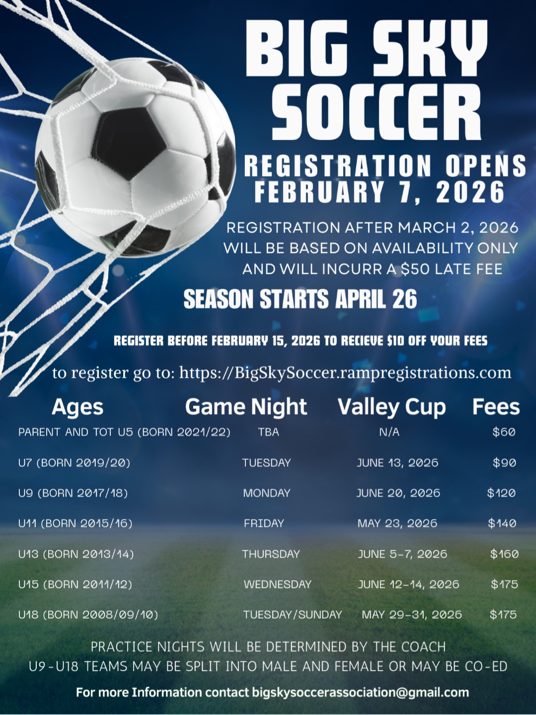 Big Sky soccer Registration for Outdoor 2026 is open!